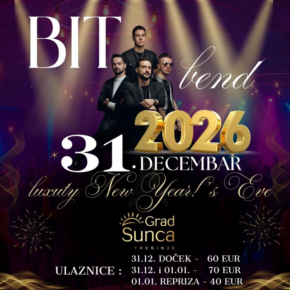 🎶 Za vrhunsku zabavu i odličnu atmosferu tokom novogodišnjeg dočeka i reprize pobrinuće se BIT bend, uz energične hitove koji garantuju provod za pamćenje.