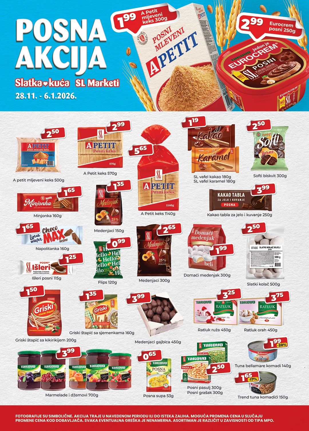 U toku božićnog posta, u „SL marketima“ i „Slatkim kućama“ očekuje vas širok izbor i odlične akcije na posne artikle.
