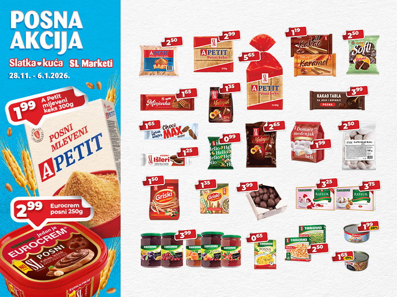 U toku božićnog posta, u „SL marketima“ i „Slatkim kućama“ očekuje vas širok izbor i odlične akcije na posne artikle.