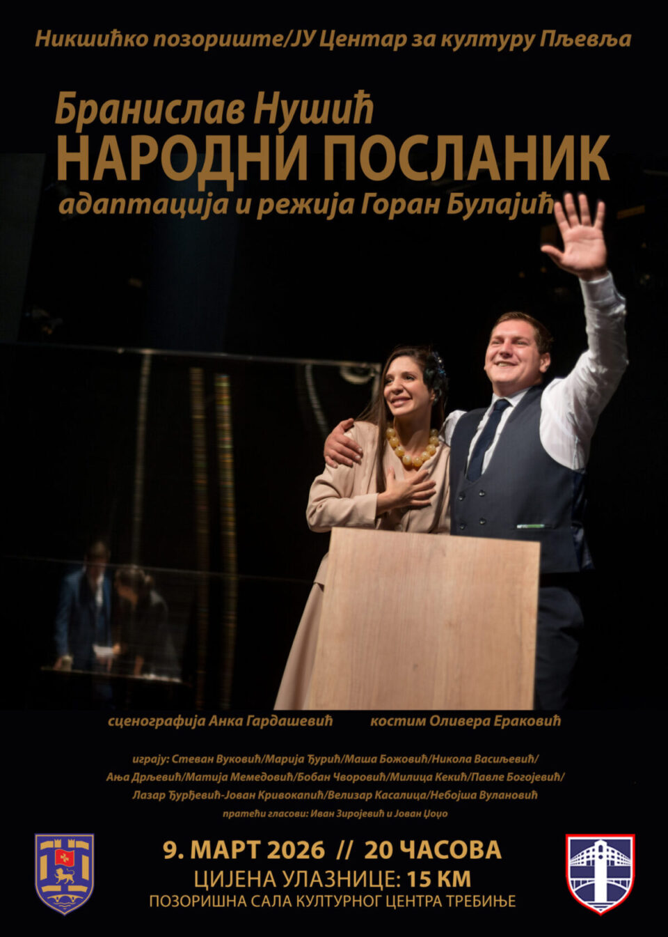 U pozorištu Kulturnog centra Trebinje, u ponedjeljak, 9. marta u 20 časova, biće izvedena pozorišna predstava “Narodni poslanik”, rađena u koprodukciji Nikšićkog pozorišta i JU Centar za kulturu Pljevlja.