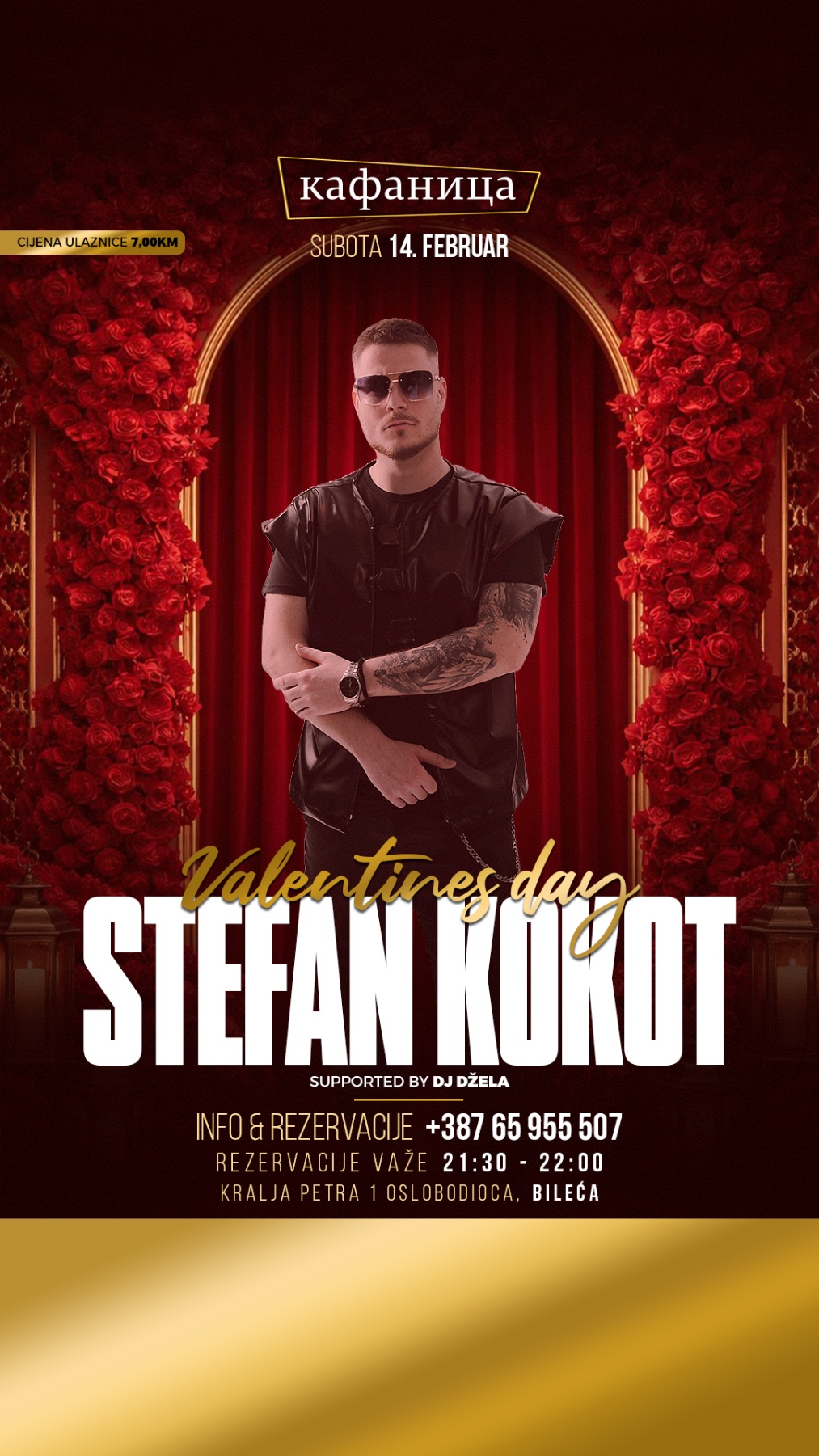 Subota 14. februar – Stefan Kokot – muzika uživo. Podrška DJ Džela.