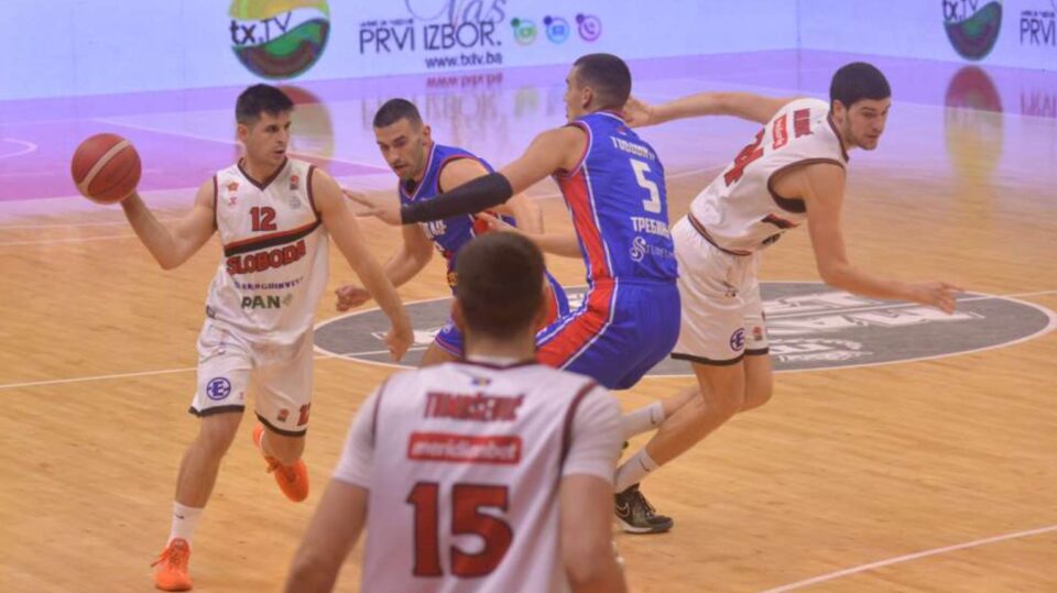 Gosti iz Trebinja su tokom prvog perioda pružili odličan otpor te nakon prvih 10 minuta imali i prednost (18:19). U drugom periodu košarkaši Slobode predvođeni Tomaševićem i Štulićem igraju znatno bolje, pa je prvo poluvrijeme okončano vodstvom domaćih košarkaša 42:37.