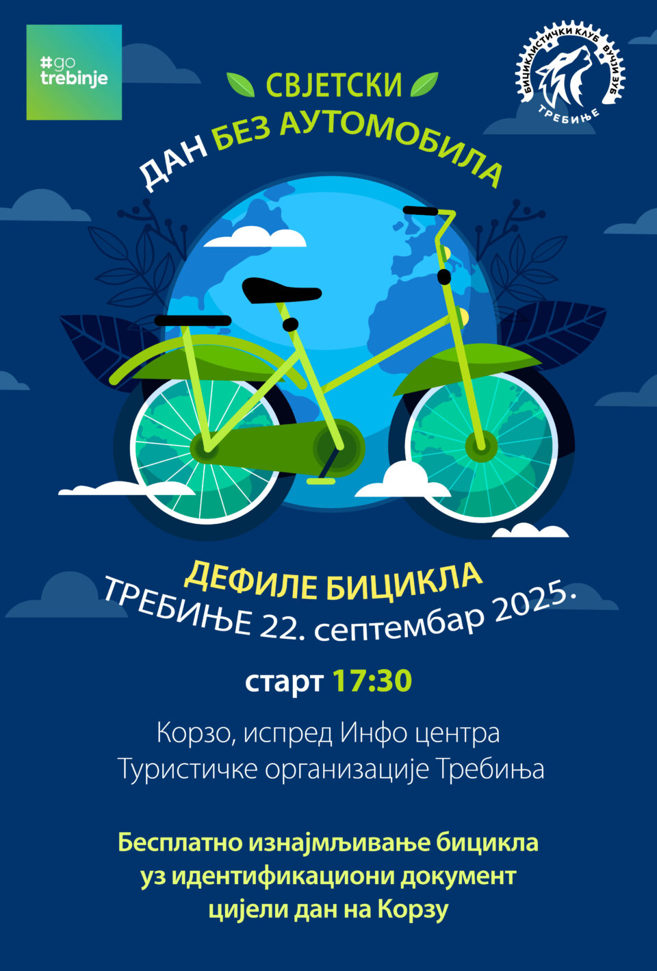 Biciklistički klub „Vučji zub“ uz podršku Turističke organizacije Grada Trebinja, povodom obilježavanja „Svjetskog dana bez automobila“, organizuje „Defile bicikala“ za sve stanovnike i posjetioce Trebinja.