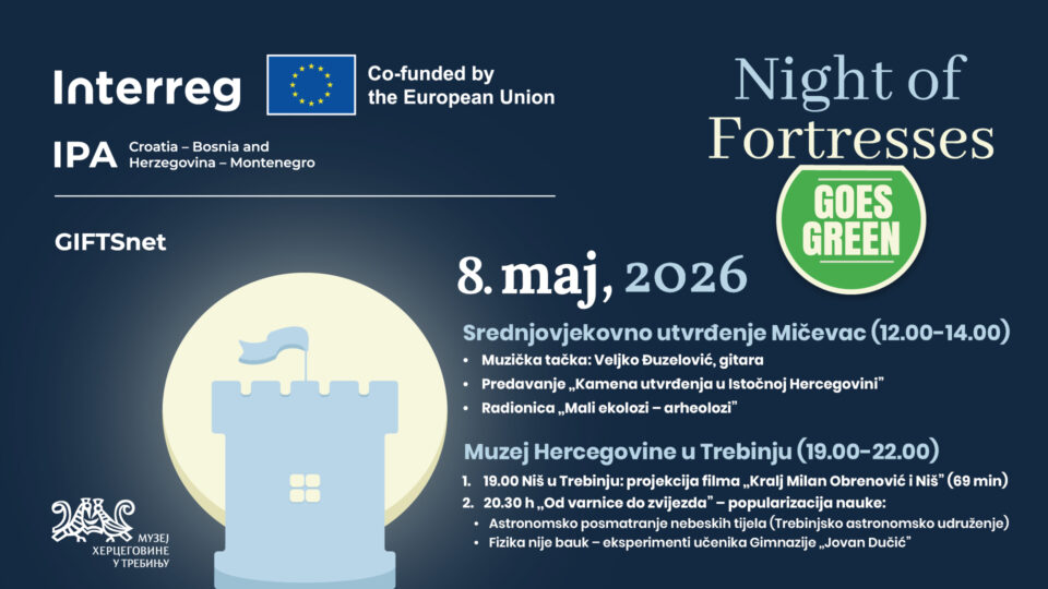 Srednjovjekovno utvrđenje Mičevac i Muzej Hercegovine u Trebinju 8. maja postaće mjesta susreta istorije, prirode, muzike, filma i nauke, kroz program manifestacije „Night of Fortresses Goes Green 2026“.