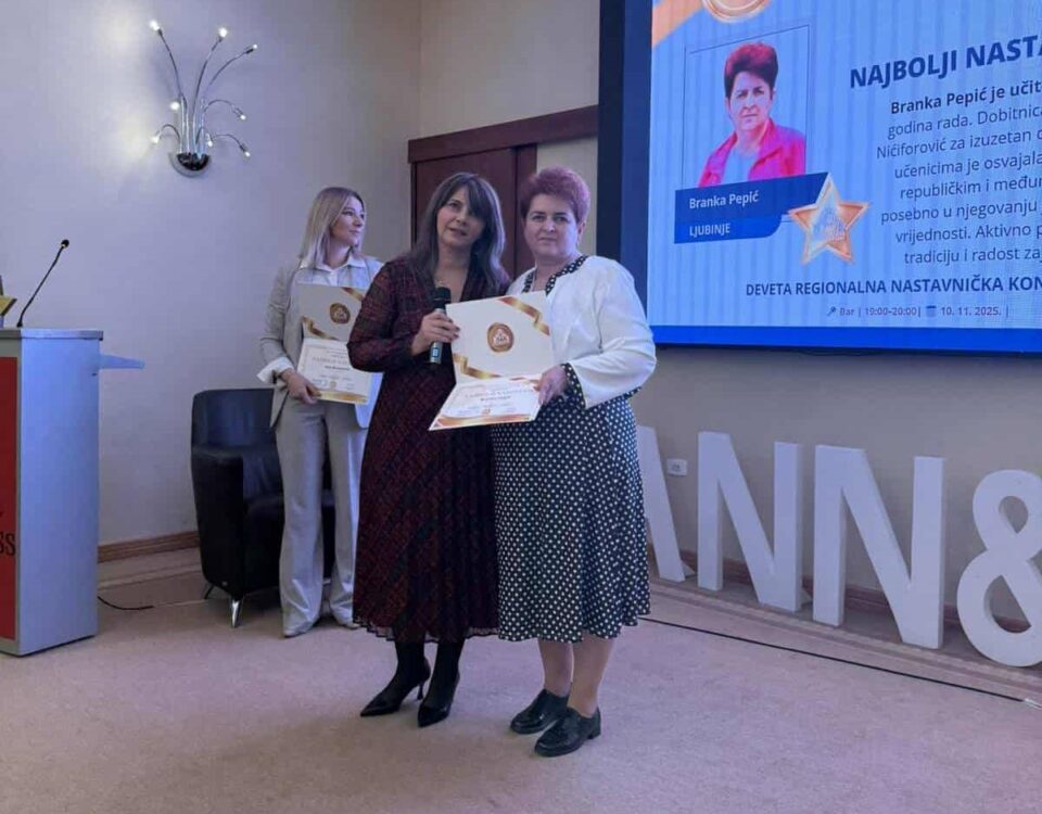 Učiteljica Branka Pepić nagrađena je prestižnim priznanjem „Najbolji nastavnik regiona“, čime je još jednom potvrđen njen dugogodišnji pedagoški rad, predanost i ljubav prema pozivu.