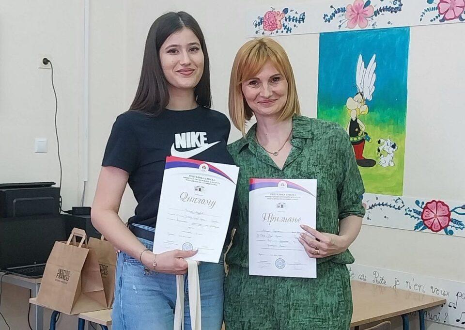 Na Republičkom takmičenju iz francuskog jezika, koje je održano u subotu u Bijeljini, Milica Nosović, učenica četvrtog razreda bilećke Gimnazije, osvojila je treće mjesto.