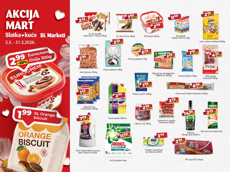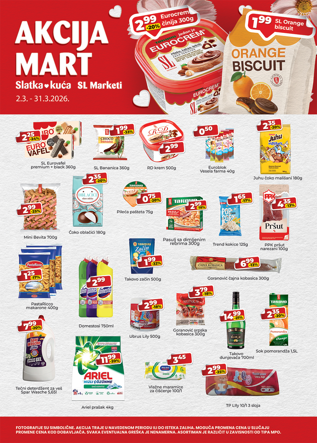 Ne propustite martovsku akciju u „SL Marketima“ i „Slatkim kućama“.