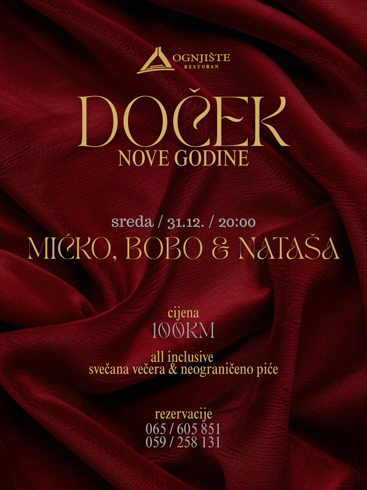 U novogodišnjoj noći će samo za Vas svirati i pjevati trio Mićko, Nataša i Bobo !