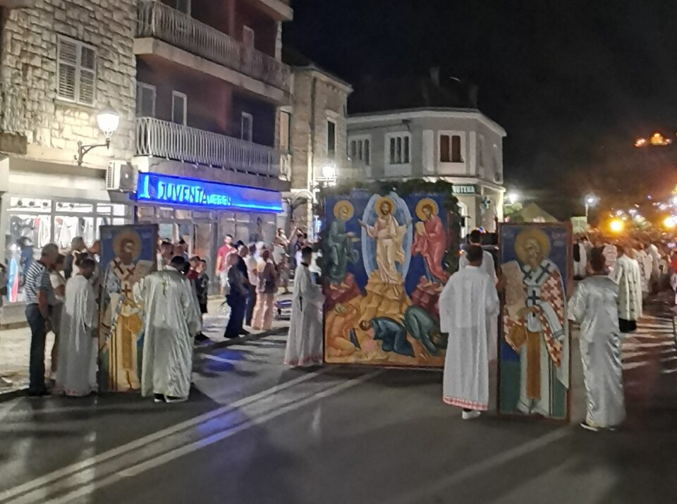 Hiljade građana predvođeni njihovim preosveštenstvima vladikama zahumsko-herčegovačkim i primorskim Dimitrijem, mileševskim Atanasijem i Humski Jovan prošli su u svečanoj litiji večeras ulicama Trebinja.