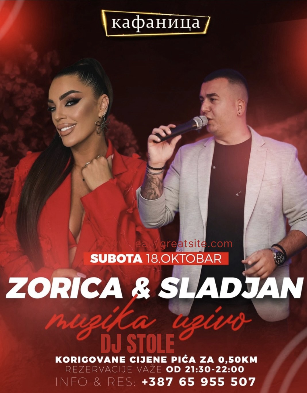 Subota 18. oktobar – garantovano dobar provod uz Zoricu i Slađana, kojima društvo pravi DJ Stole
