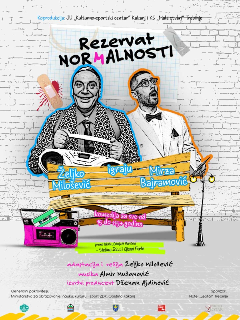 U pozorištu Kulturnog centra Trebinje, u srijedu, 29. aprila u 20 časova biće izvedena pozorišna predstava “Rezervat normalnosti”, nastala po motivima teksta “Čekajući Marčela” Đanija Fortea i Stefana Ričija, u adaptaciji i režiji Željka Miloševića.