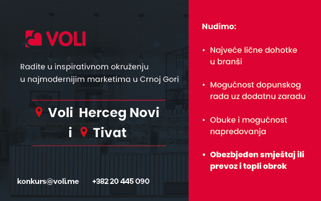 Pridružite se Voli timu u Herceg Novom ili Tivtu! Tražite posao u dinamičnom okruženju? Voli, vodeći lanac supermarketa u Crnoj Gori, traži motivisane i odgovorne kandidate.